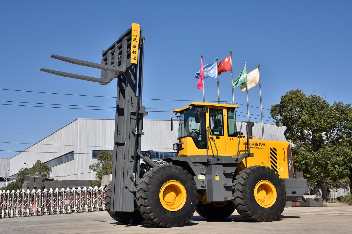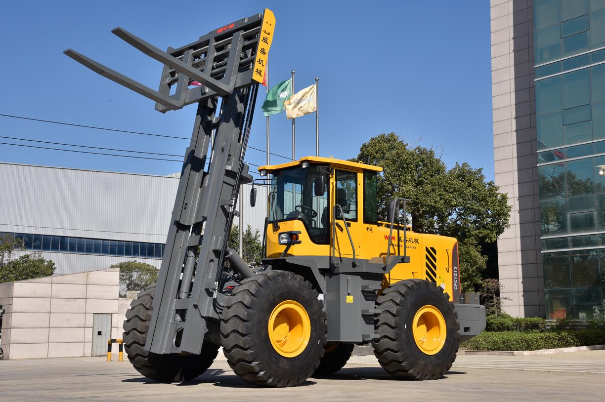 輪式越野叉車(chē)是具有雙橋驅(qū)動(dòng)及越野性能的內(nèi)燃平衡重式液力傳動(dòng)叉車(chē)。該車(chē)具有良好的牽引性能和行駛性能;整車(chē)外形美觀,操縱簡(jiǎn)便、舒適,效率高;工作平衡可靠,機(jī)動(dòng)性強(qiáng),維修方便。它適用于倉(cāng)庫(kù)、貨場(chǎng)、車(chē)站、港口、礦山、工地及一般廠礦企業(yè)的貨物裝卸、堆垛或搬運(yùn),還可配裝各種專(zhuān)用屬具,以適應(yīng)不同的裝卸需要。