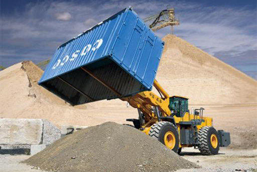 集裝箱360°翻轉裝卸叉裝車,通過創(chuàng)新的專用屬具裝置,實現(xiàn)了將20尺集裝箱360°快速可控翻轉,滿足了散裝物料高效裝卸,如:戰(zhàn)略性物資建筑砂石物料,各種礦石礦粉,煤炭焦炭,礦渣鐵渣煤渣,城市建筑垃圾及各種工業(yè)渣土。
